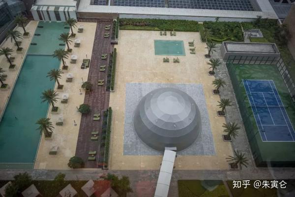 我俯拍了一张照,有40米的标准泳池,有网球场。