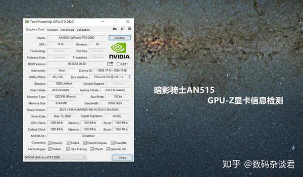 宏碁暗影骑士 · 擎它采用的是RTX2060,通过GPU-Z我们可以看到这款移动版的RTX2060拥有1920个着色单元、48个光栅单元、160个纹理单元,支持RTX光线追踪技术,硬件参数上可以说与桌面版一致,那么实际的使用效果如何,我们通过实测来验证。