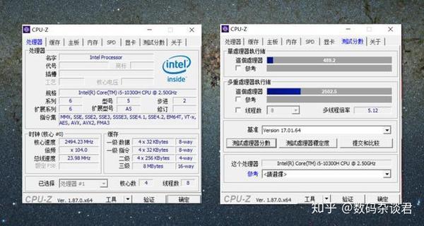 接下来笔者用CPU-Z来看了一下十代15 10300H处理器的详细信息,这款处理器采用的了4核心8线程的设计,并且针对高性能的显卡进行优化,可以提供更快处理性能,更优的视觉体验。