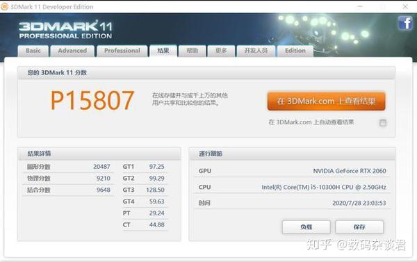 通过3DMARK 11P全面的测试之后,RTX2060得到了综合跑分15807的成绩,其中图形得分20497,物理得分9210,可以说这款显卡的性能很强慢,对于目前市面上的主流游戏几乎是没有任何压力的。
