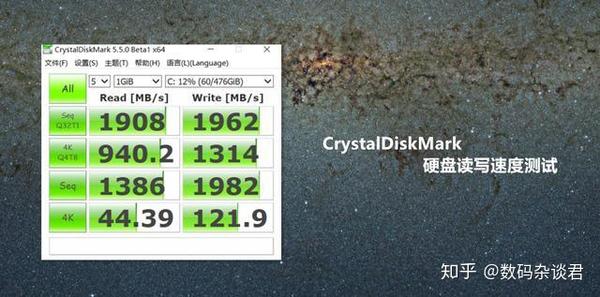 宏碁暗影骑士·擎它的硬盘采用的是西数SN530 1T固态,而硬盘的读取速度也是直接影响电影的开机速度,软件启动速度,以及游戏的加载速度,所以这里笔者采用了CrystalDiskMark对宏碁暗影骑士·擎的固态硬盘进行了读取和写入的速度测试,得到了读取1908MB/s,写入1962Mb/s的成绩,总体表现还是非常不错的。